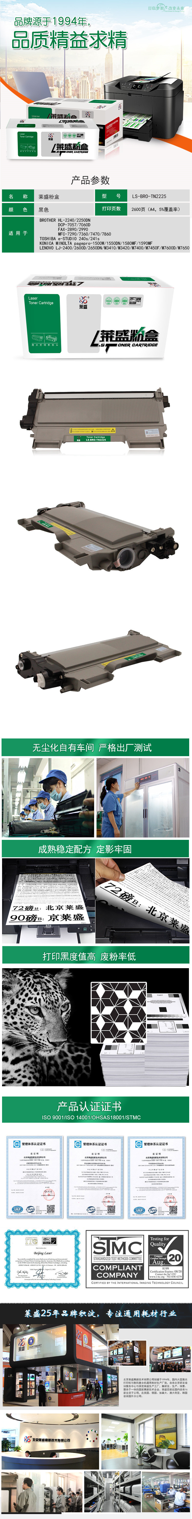 莱盛LS-TN2225 粉盒 HL-2240/2250DN,DCP-7057/7060D,FAX-2890/2990,MFC-7290/7360/7470/7860东芝240s/241s